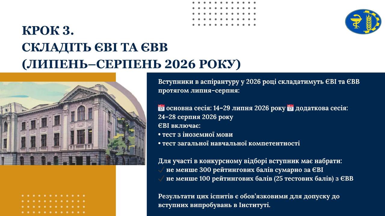 Вступники в аспірантуру у 2026 році складатимуть ЄВІ та ЄВВ протягом липня–серпня: