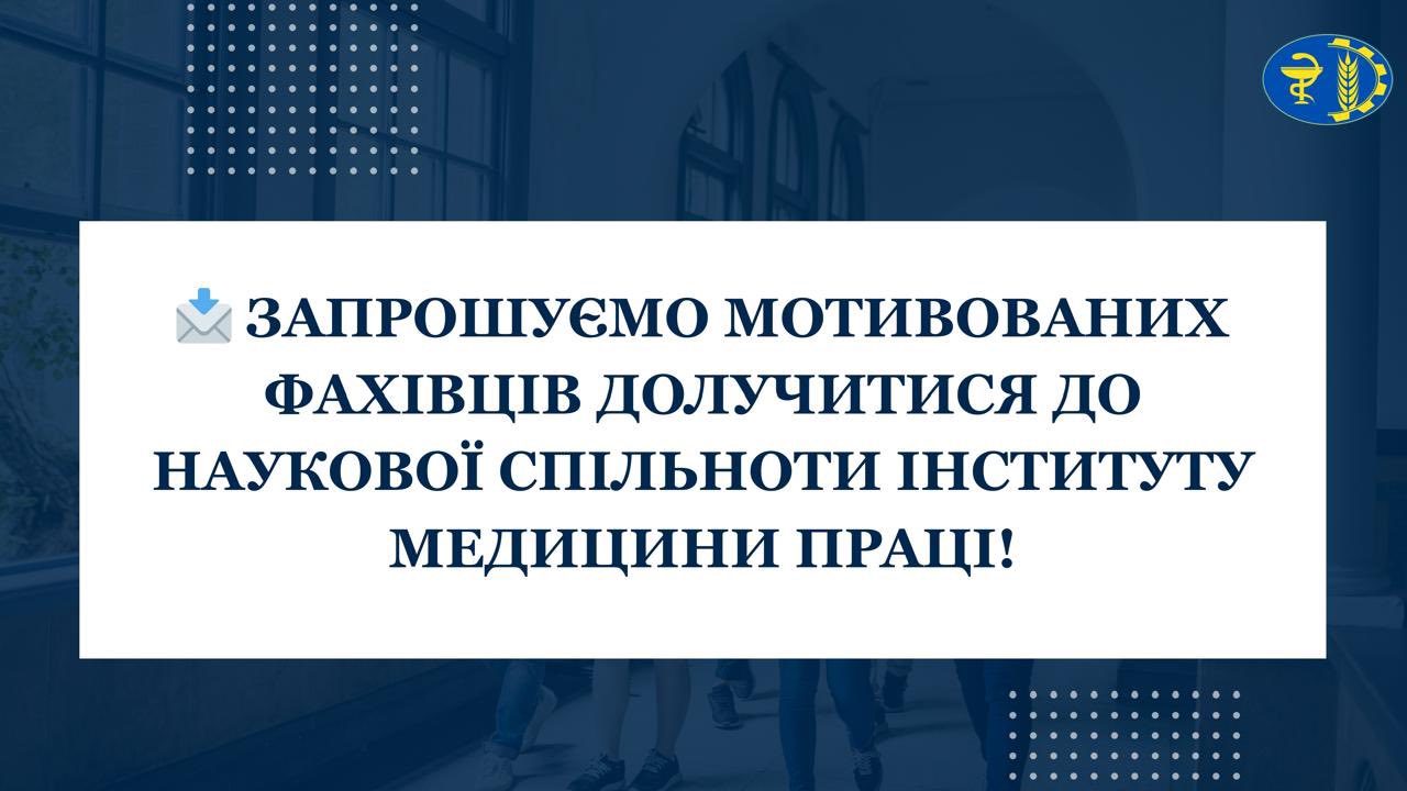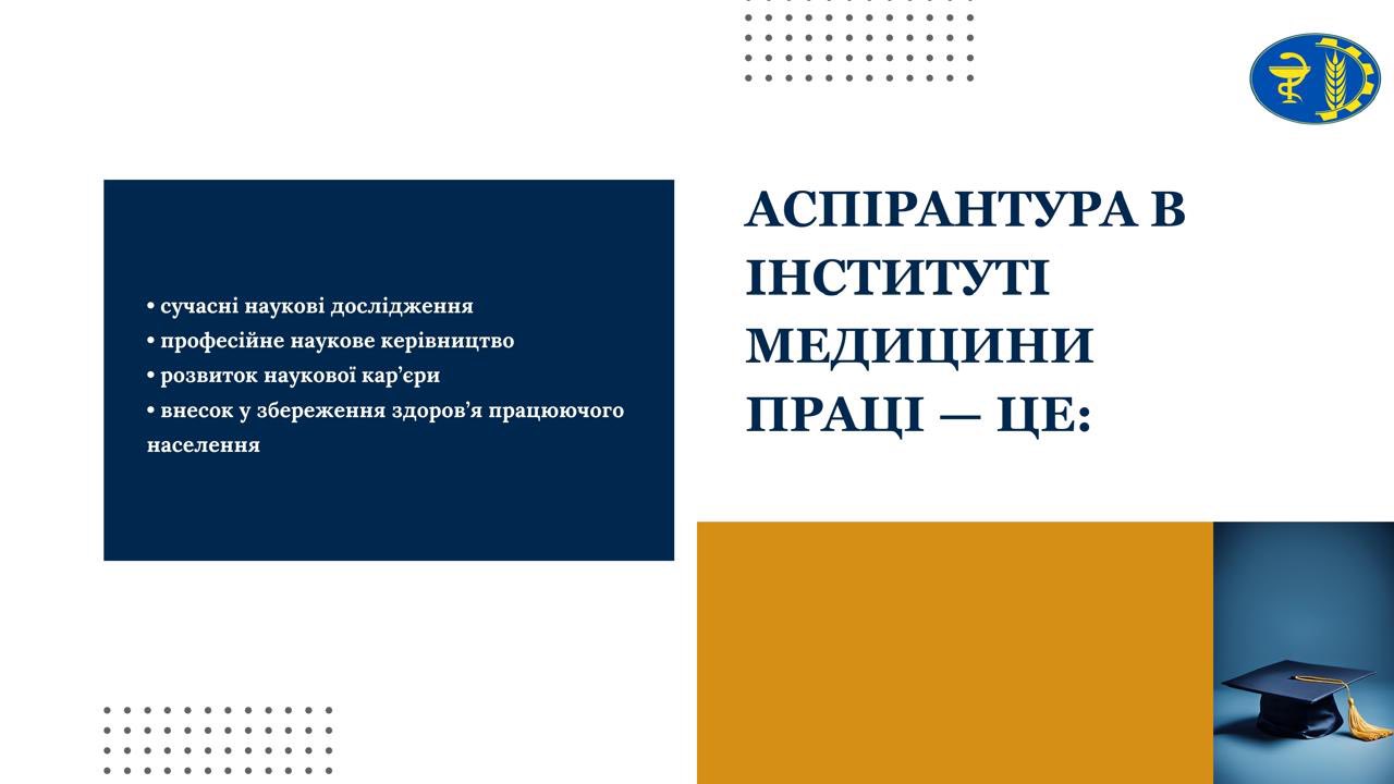 Інститут медицини праці запрошує вступників до аспірантури для здобуття ступеня доктора філософії (PhD). Це можливість реалізувати власний науковий потенціал, проводити актуальні дослідження та формувати майбутнє медицини праці й громадського здоров’я.