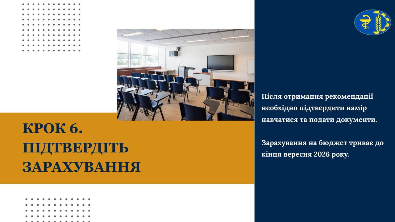 Після отримання рекомендації необхідно підтвердити намір навчатися та подати документи.