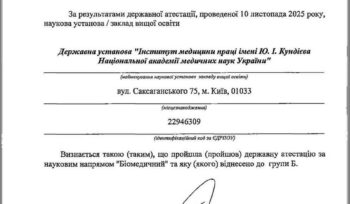 Інститут медицини праці імені Ю. І. Кундієва НАМН України успішно пройшов державну атестацію та визнаний таким, що відповідає вимогам за науковим напрямом «Біомедичний» з віднесенням до групи Б.